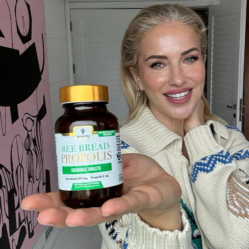 BEE&YOU Bee Bread Propolis Chewable Tablet, each tablet containing 495 mg of bee bread and 5 mg of Anatolian Propolis, is a 100% natural support for your immune and digestive system health.